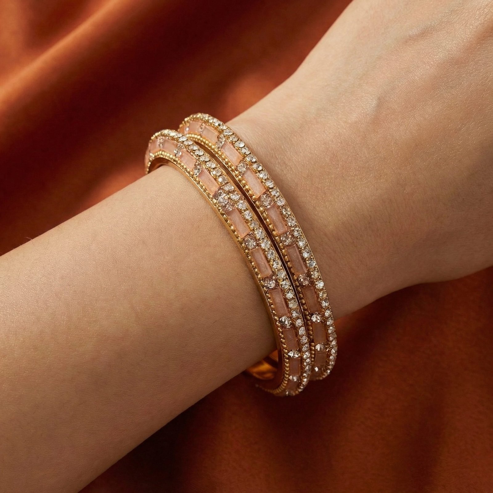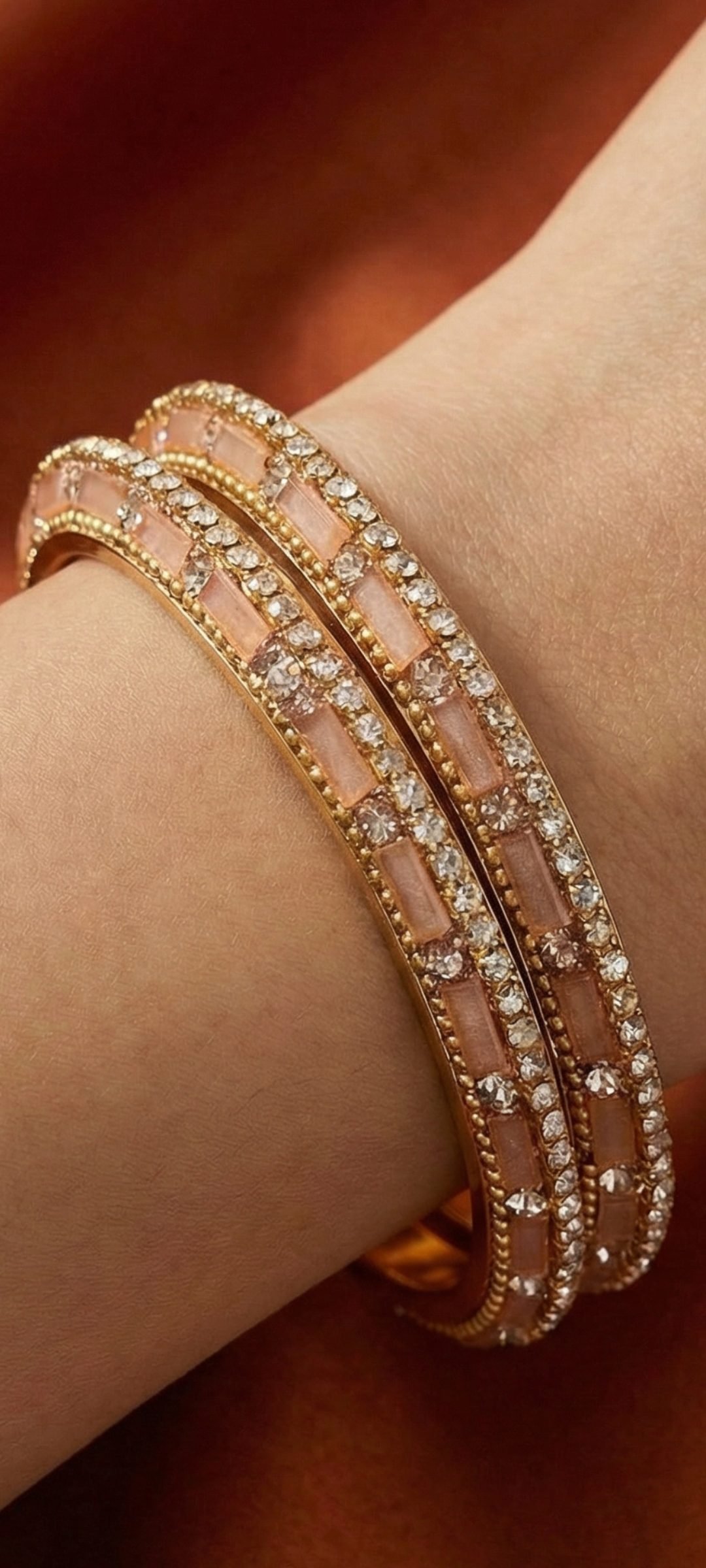 Elevate your accessory game with our stunning peach zircon bangle, featuring an exquisite diamond pattern that catches the light beautifully. This elegant piece is perfect for any occasion, adding a touch of sophistication to your outfit while ensuring you stand out. Crafted with high-quality materials, it promises durability and timeless style, making it a must-have addition to your jewelry collection. Treat yourself or surprise a loved one with this luxurious bangle that embodies both grace and glamour!